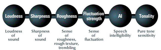 Some of the much known deterministic sound quality terminologies are Loudness, sharpness, tonality, Speech Interference Level, Articulation Index, pitch, squeak etc. All these are derived from understanding the behavior of sound based on subjective evaluations; various filters are created and applied to realize the subjective characteristics to be accounted into objective matrix, thereby updating the sound quality assessment tool package.